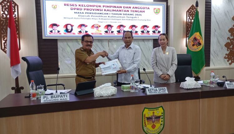 KUALA KURUN,humanusantara.com – Pemerintah Kabupaten (Pemkab) Gunung Mas (Gumas) menerima kunjungan reses kelompok Pimpinan dan Anggota DPRD Kalimantan Tengah (Kalteng), masa persidangan I Tahun Sidang 2024.