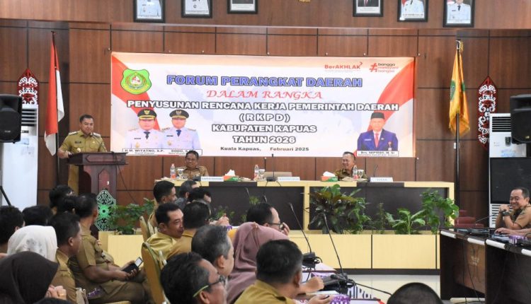KUALA KAPUAS,humanusantara.com – Wakil Bupati Kapuas, Kalimantan Tengah (Kalteng) Dodo, membuka secara resmi Forum Perangkat Daerah (FPD), dalam rangka penyusunan rencana kerja pemerintah daerah (RKPD) Kabupaten Kapuas Tahun 2026, Selasa (25/2/2025).