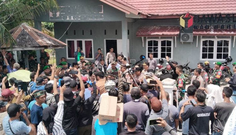 Ratusan pendukung salah satu pasangan calon (Paslon), Sabtu (15/3/2025), menggelar aksi damai di depan kantor Badan Pengawasan Pemilu (Bawaslu) Barut.