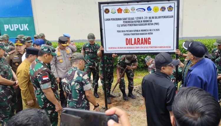 “Hari ini kita telah melaksanakan pemasangan plang berkaitan dengan penguasaan kembali lahan milik PT GAP,” kata Komandan Satgas (Dansatgas) PKH Mayjen TNI Yusman Madayun, kepada wartawan, Selasa (18/3/2025).