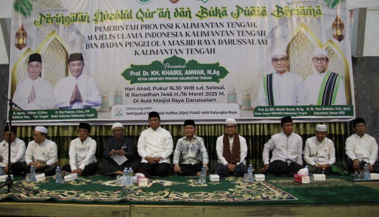 PALANGKA RAYA,humanusantara.com – Gubernur Kalimantan Tengah (Kalteng) H Agustiar Sabran bersama Wakil Gubernur H Edy Pratowo hadiri Peringatan Nuzulul Qur’an 1446 H, di aula Masjid Raya Darussalam Palangka Raya, Minggu (16/3/2025).