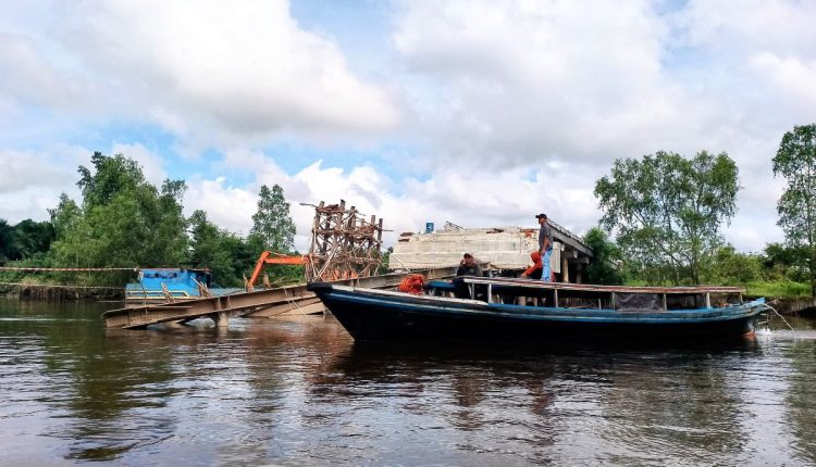 Pembangunan jembatan yang mencapai nilai Rp20 miliar ini ambruk pada saat pengerjaan, Sabtu (22/2/2025). Menutup sungai yang menjadi jalur utama mobilitas barang dan jasa masyarakat enam desa di Kecamatan Bataguh, Kabupaten Kapuas, Kalimantan Tengah.