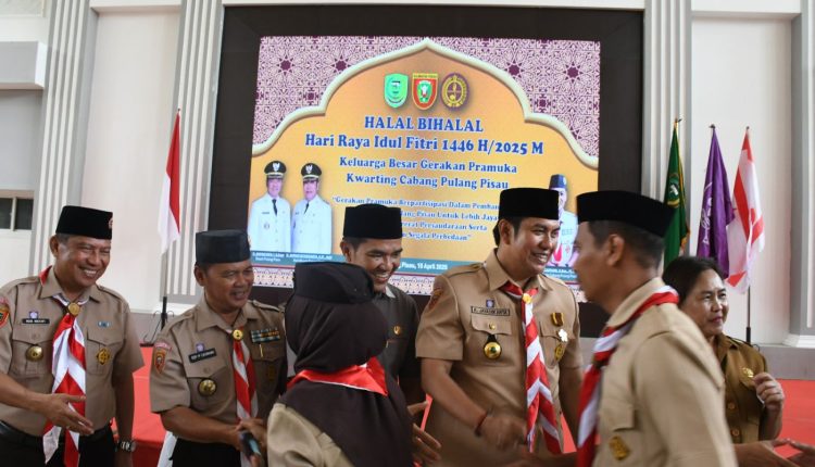 PALANGKA RAYA,humanusantara.com – Bupati Pulang Pisau (Pulpis), Kalimantan Tengah (Kalteng) H Ahmad Rifa’i bersama Wakil Bupati H Ahmad Jayadikarta, Selasa (15/4/2025), menghadiri halalbihalal Hari Raya Idulfitri 1446 Hijriah/2025 Masehi, bersama keluarga Besar Gerakan Pramuka Kwarting Cabang Pulpis, di aula Banama Tingang, kantor Bupati, Selasa (15/4/2025).