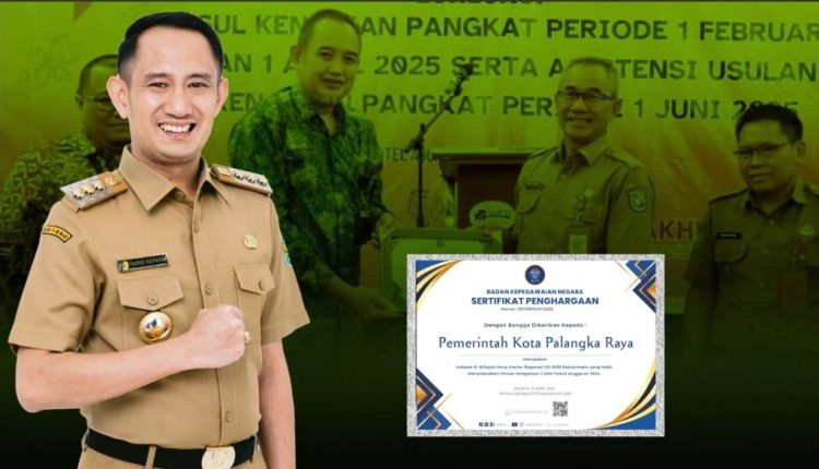 PALANGKA RAYA,humanusantara.com – Pemerintah Kota (Pemko) Palangka Raya menerima penghargaan dari Kantor Regional VIII Badan Kepegawaian Negara (BKN), atas penyelesaian proses pengadaan Calon Aparatur Sipil Negara (CASN) Tahun Anggaran 2024 dengan tepat waktu dan efisien.