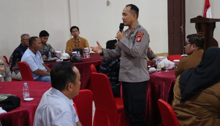 Kapolres Gunung Mas AKBP Heru Eko Wibowo berbincang dengan peserta analisis dan evaluasi program ketahanan pangan swasembada jagung kwartal II beberapa waktu lalu. Foto : Istimewa