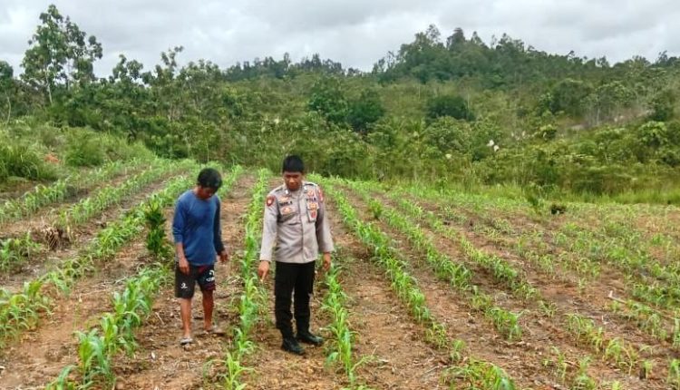Dua personel Polsek Kurun, Bripka Saiful dan Bripka Taufiq, diterjunkan langsung ke lapangan untuk memantau perkembangan tanaman jagung yang berada di bawah pengawasan Kapolsek Kurun, Iptu Chintya Pradjipta Putri.