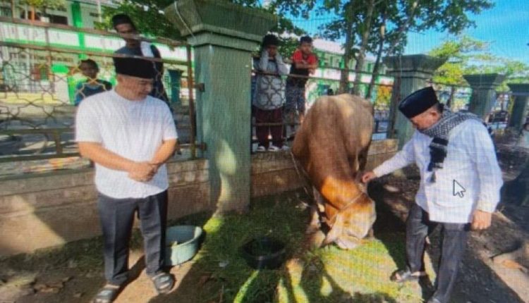 KUALA KAPUAS,humanusantara.com – Bupati Kapuas, Kalimantan Tengah (Kalteng) HM Wiyatno didampingi Wakil Bupati Dodo, Sabtu (7/6/2025), menyerahkan sapi kurban bantuan Presiden RI Prabowo Subianto, ke Masjid Agung Al Mukkaram Amanah.