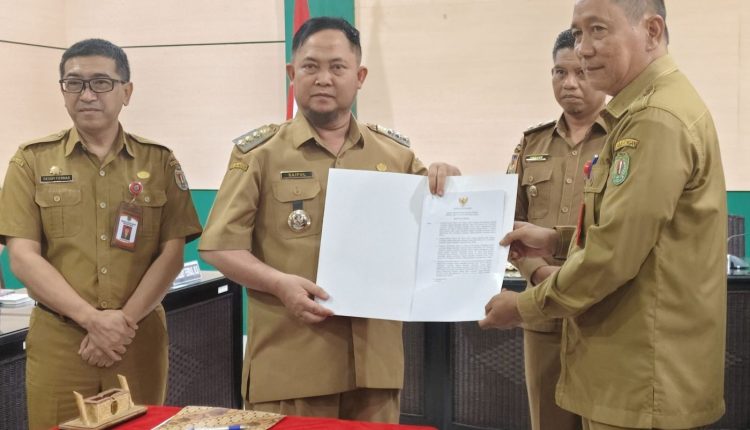 Serah terima jabatan (Sertijab) dari Penjabat (Pj) Sekda) dari Deddy Ferras kepada Cristia Rain, langsung disaksikan Bupati Katingan Saiful bersama Wakil Bupati Firdaus, di ruang rapat Bupati, Senin (14/7/2025).