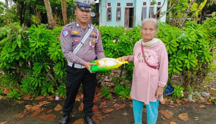 Dalam aksi tersebut, Satlantas Polres Gumas menyalurkan 40 sak beras kemasan 5 kg kepada warga yang membutuhkan.