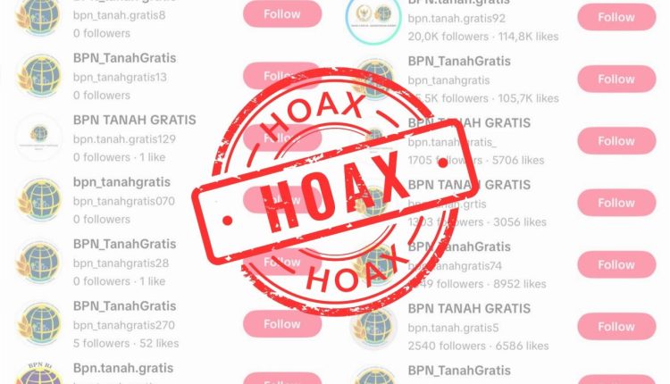 JAKARTA,humanusantara.com – Belakangan beredar informasi di platform TikTok mengenai akun yang menyebarluaskan hoaks “BPN Tanah Gratis”.