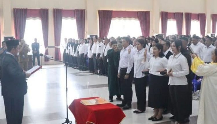 KASONGAN,humanusantara – Bupati Katingan, Kalimantan Tengah Saiful, melaksanakan pelantikan dan pengambilan sumpah/janji jabatan Pegawai Pemerintah dengan Perjanjian Kerja (PPPK) Tenaga Teknis, PPPK Tenaga Kesehatan, serta Penyerahan Keputusan Pengangkatan PPPK Tahap II Tahun Anggaran 2024, di lingkungan Pemerintah Kabupaten (Pemkab) Katingan, di Gedung Salawah, Kasongan, Senin (13/10/2025).