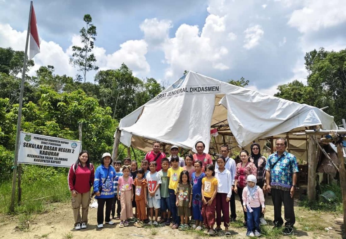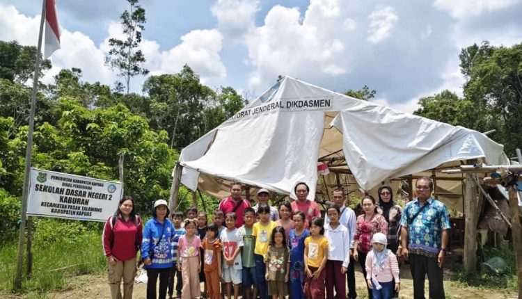 KUALA KAPUAS,humanusantara – Disela kunjungan kerja mendampingi Bupati Kapuas HM Wiyatno bersama Wakil Bupati Dodo serta Sekda Usis I Sangkau dan sejumlah Kepala OPD, yang tergabung dalam “Trail Adventure Pemkab Kapuas , di empat Kecamatan daerah hulu Kapuas beberapa waktu lalu, Kepala Dinas Pendidikan Kabupaten Kapuas H Suwarno Muriyat menyempaikan diri, meninjau kegiatan belajar mengajar di SD Negeri 2 Kaburan, Kecamatan Mandau Talawang, yang beberapa waktu lalu, proses belajar mengajar berlangsung di tenda darurat akibat banjir.