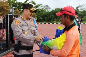 Dalam rangkaian apel, Kapolres Gumas AKBP Heru Eko Wibowo juga secara simbolis menyerahkan bingkisan kepada perwakilan buruh dan organisasi yang hadir sebagai bentuk apresiasi dan penguatan tali silaturahmi.