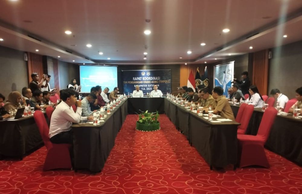 KASONGAN,humanusantara – Dalam rangka memperkuat koordinasi antarinstansi terkait pengawasan keberadaan dan aktivitas orang asing di wilayah Kabupaten Katingan, Badan Kesatuan Bangsa dan Politik (Kesbangpol) Kabupaten Katingan menghadiri Rapat Tim Pengawasan Orang Asing (Timpora) Tahun 2025, yang diselenggarakan kantor Imigrasi Kelas II TPI Sampit, bertempat di Aquarius Boutique Hotel Sampit, Selasa (4/11/2025).