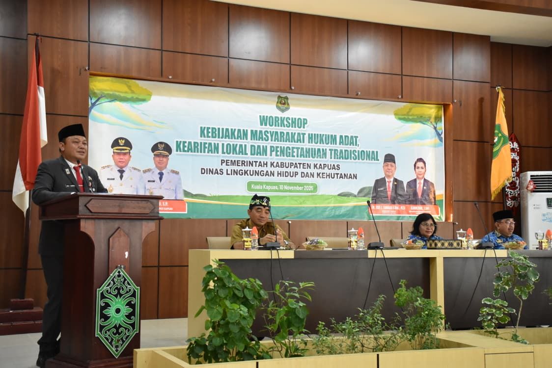 KUALA KAPUAS,humanusantara – Pemerintah Kabupaten Kapuas, Kalimantan Tengah, melalui Sekretaris Daerah Usis I Sangkai, Senin (10/11/2025), membuka secara resmi workshop Kebijakan Masyarakat Hukum Adat, Kearifan Lokal dan Pengetahuan Tradisional.
