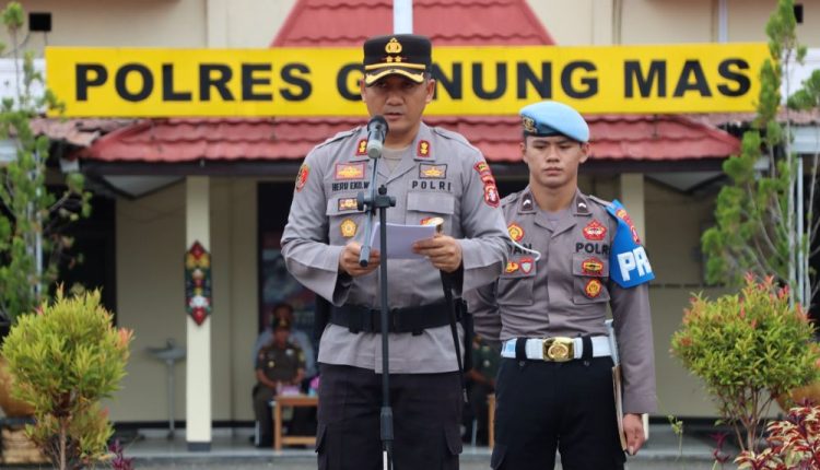 Apel dipimpin langsung Kapolres Gunung Mas AKBP Heru Eko Wibowo, dan dihadiri para Pejabat Utama (PJU) Polres serta tamu undangan dari unsur terkait.