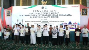 Selain sertipikat yang diterima oleh Romo Wahyu dan Lukman Hakim, pada kesempatan tersebut juga diserahkan 69 Sertipikat Hak Pakai atas nama Pemerintah Provinsi Jawa Timur, 747 Sertipikat Hak Pakai atas nama Pemerintah Kabupaten/Kota di Jawa Timur, serta 2.532 sertipikat tanah wakaf dan rumah ibadah untuk umat di Provinsi Jawa Timur. Sertipikat tanah wakaf dan rumah ibadah yang diserahkan diperuntukkan bagi 2.484 tanah wakaf (masjid, musala, pondok pesantren, dan wakaf produktif), 24 gereja, 18 pura, 3 wihara, serta 3 kongregasi. (mw/rt/hns1/red)